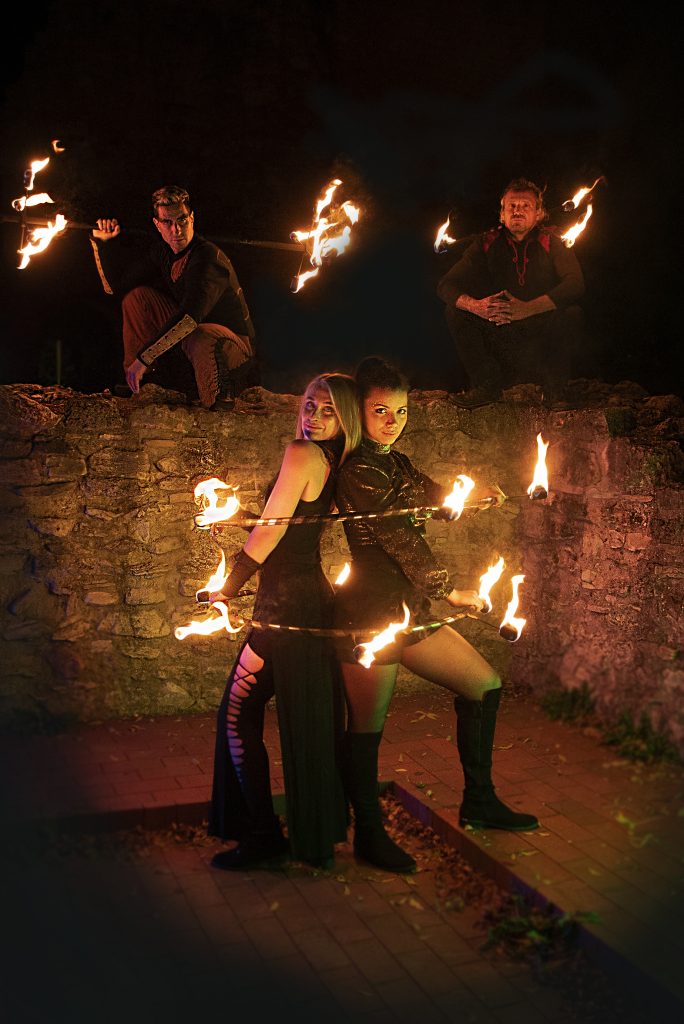 Egyedi építésű tűzzsonglőr eszközeink között tüzes csillagok, tüzes szoknyák, koronák, komplett lángoló jelmezek is szerepelnek.